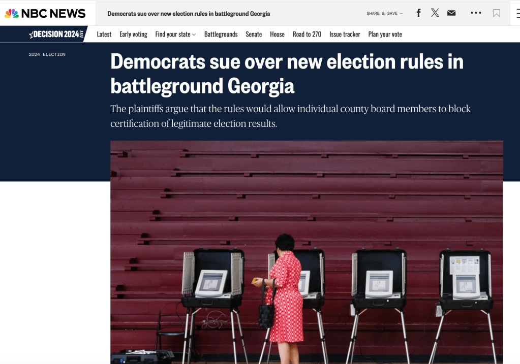 NBC News – The plaintiffs argue that the rules would allow individual county board members to block certification of legitimate election results.